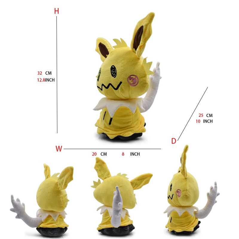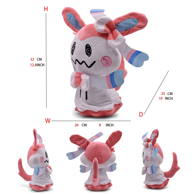 This stuffed doll features 9 different kinds of Pokemon, including Mimikyu Cosplay Umbreon, Eevee, Sylveon, Espeon, Vaporeon, and Leafeon. This playful and whimsical toy is sure to delight any Pokemon fan.